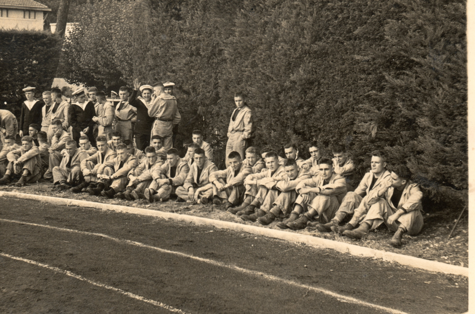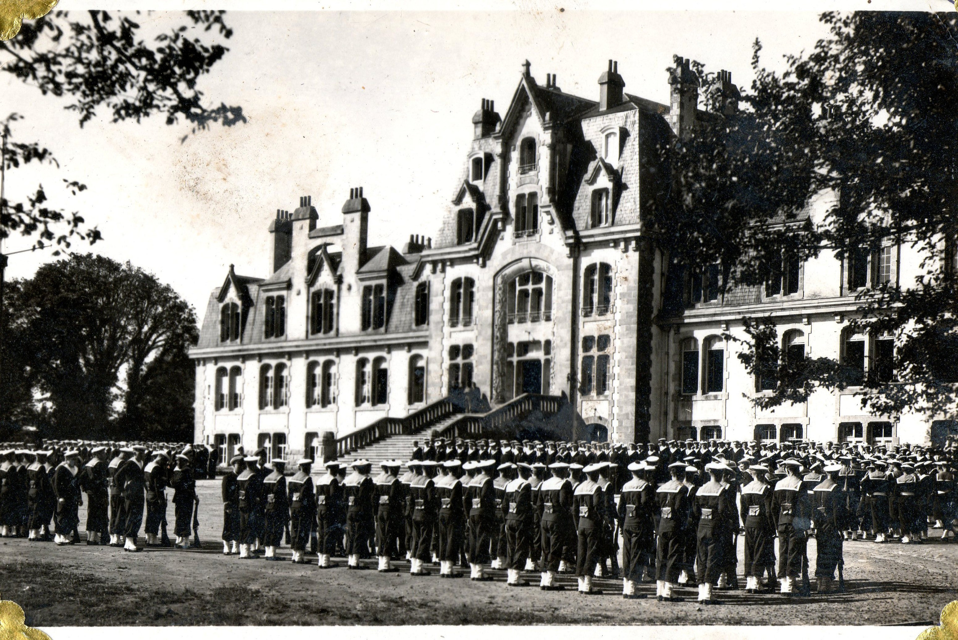 Après l'école des mousses il a fait une spécialisation jusqu'au premier avril 1950, six mois en mer et de manœuvres, le Richelieu en arrière plan et notre dame d ételle école de manœuvres de Brest.
